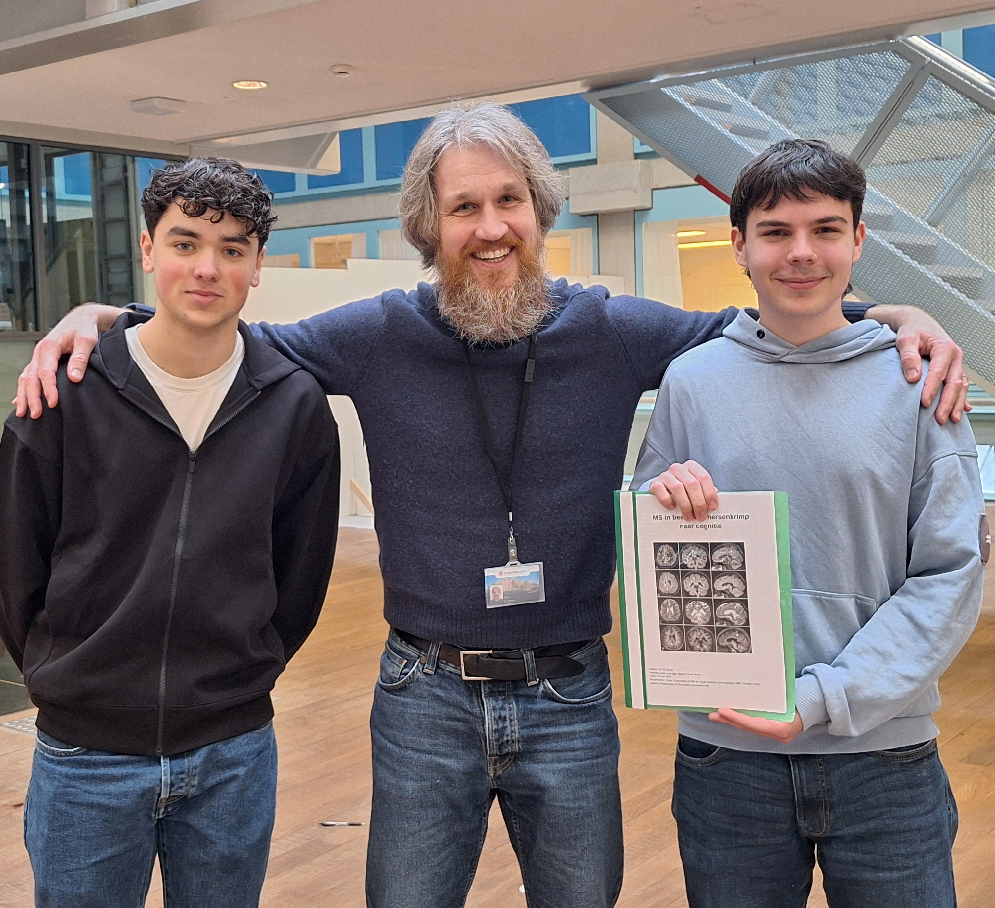 Twee middelbare scholieren van het Alkwin Kollege in Uithoorn, Sam Ruhe (6 vwo) en Daan van der Veer (5 vwo), hebben een bijzonder onderzoek gedaan voor hun profielwerkstuk. Ze kregen hulp van Dr. Ir. Hugo Vrenken en mochten echte gegevens gebruiken van mensen met MS, maar wel geanonimiseerd. Ze kozen dit onderwerp omdat de moeder van Daan MS heeft. Op 3 maart horen ze of ze de profielwerkstukprijs van school winnen en door mogen naar de regionale finale.